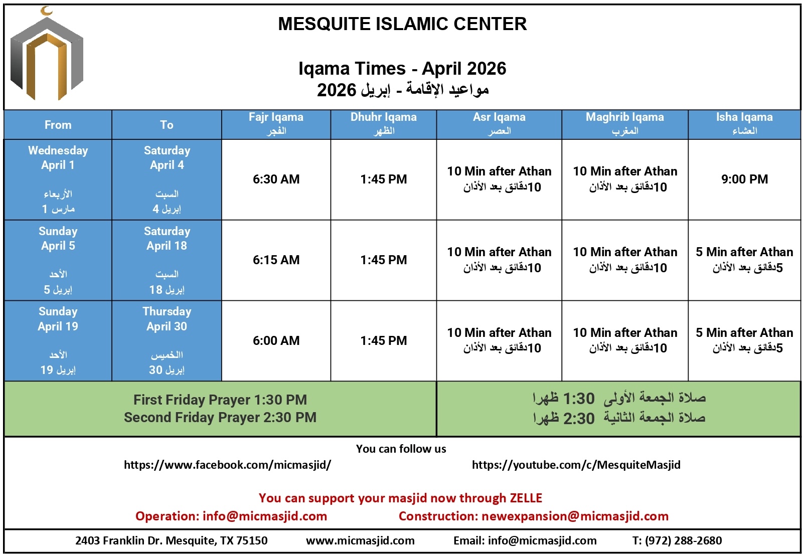Mesquite Islamic Center was founded on the idea of helping those in need. Ever since our organization was established, we have endeavored to provide help where the need is greatest. MIC currently consists of two mullahs, one for the men that has a capacity of 200 people, and one for the sisters that have a capacity of 150 sisters.